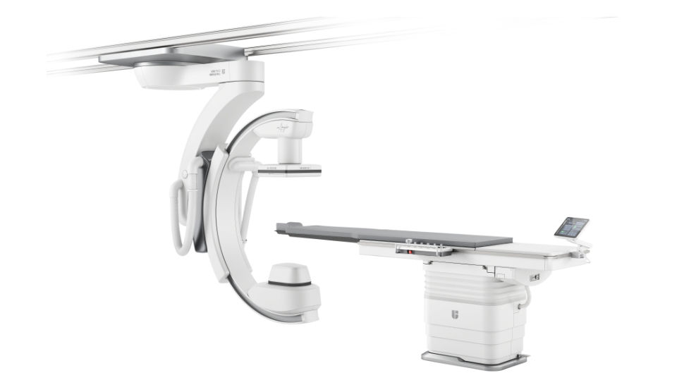 The 8-axis ceiling-mounted robotic system offers exceptional flexibility, allowing it to navigate freely through the complex environment of the interventional suite. This allows for full coverage of the lab space and enables easy tableside accessibility.